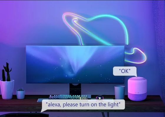 Akıllı ses kontrolü: LED neon ışığınızı Amazon Echo veya Google Asistan gibi üçüncü taraf akıllı hoparlörler kullanarak sesinizle kolayca kontrol edebilirsiniz.LED neon ışığınızı sesinize senkronize eden müzik modunu seveceksiniz., titreyen ve göz kamaştırıcı bir ışık gösterisi yaratıyor.